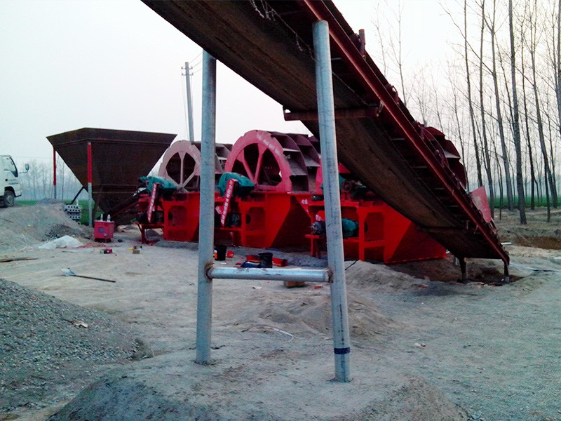 2、裝載機將原料裝入喂料斗內料將原料均勻給予石粉清洗設備。